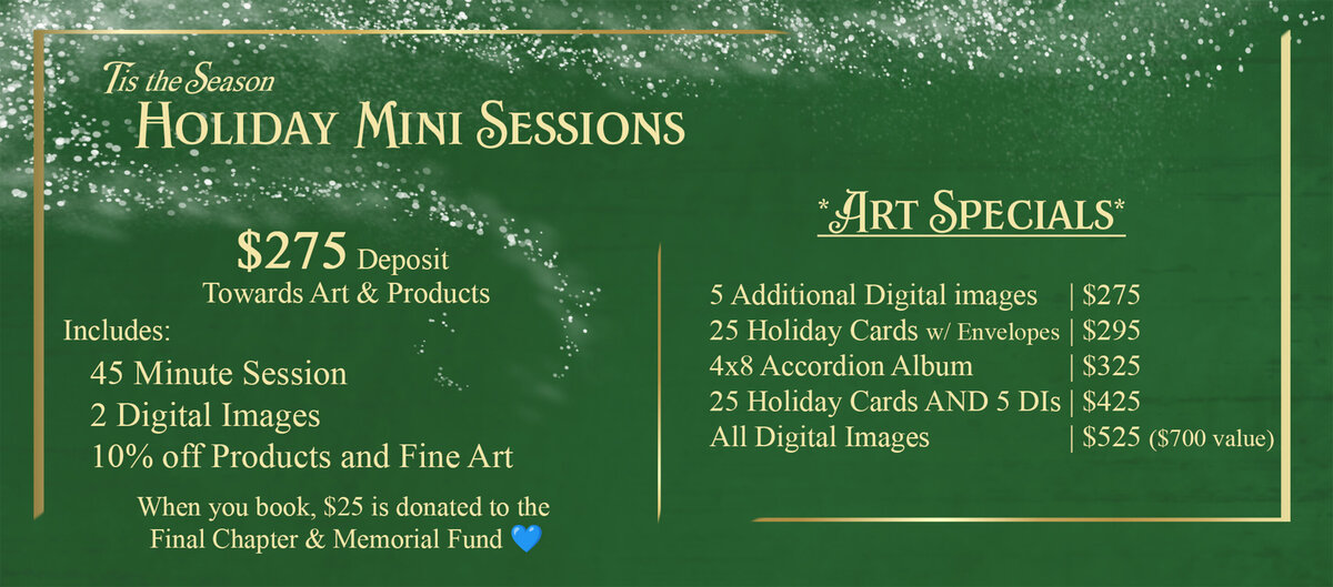 Thanks to the generosity of others, donations are available to offer assistance towards Final Chapter and Memorial Sessions for families who are experiencing loss and may need a little extra support.